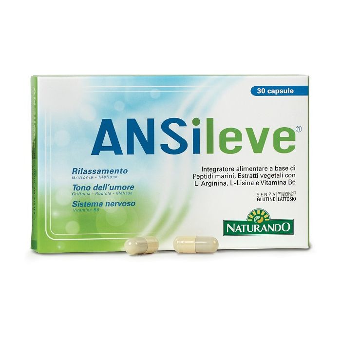 Integratore alimentare a base di Cyracos (estratto secco di melissa), peptidi marini idrolizzati, rodiola, griffonia, L-arginina, L-lisina e vitamina B6.