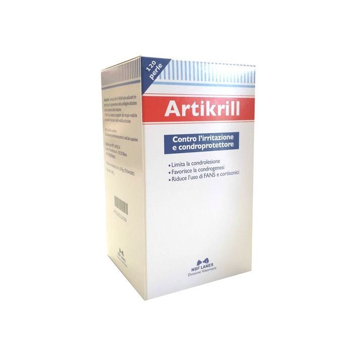 Artikrill cane è un mangime complementare dietetico formulato con acidi grassi omega-3 (EPA) da olio di pesce e con un livello adeguato di vitamina E per il supporto del metabolismo articolare in caso di osteoartrite del cane.