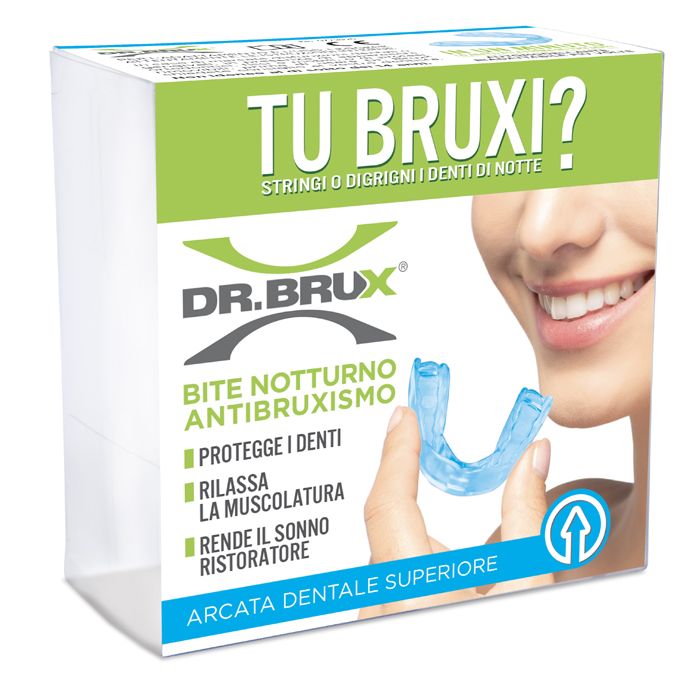 Dr. Brux è un pratico bite automodellante indicato per proteggere i denti dal bruxismo o dal digrignamento.