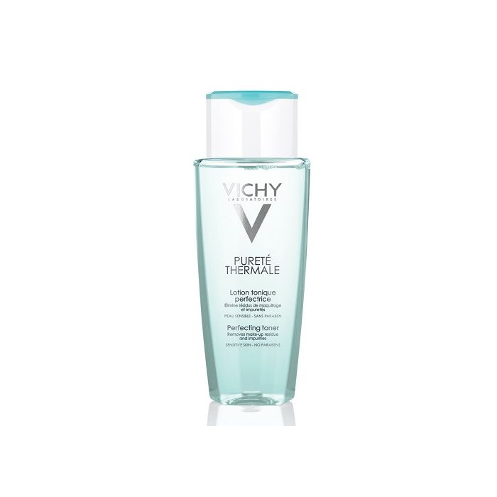 Tonico perfezionatore. Perfeziona la detersione eliminando i residui di trucco e le impurità. Testato su pelle sensibile sotto controllo dermatologico. Con Acqua Termale di Vichy. Senza Parabeni. Ipoallergenico*. Senza alcool. *Formulato per ridurre i rischi di allergia. La pelle è pulita e fresca.