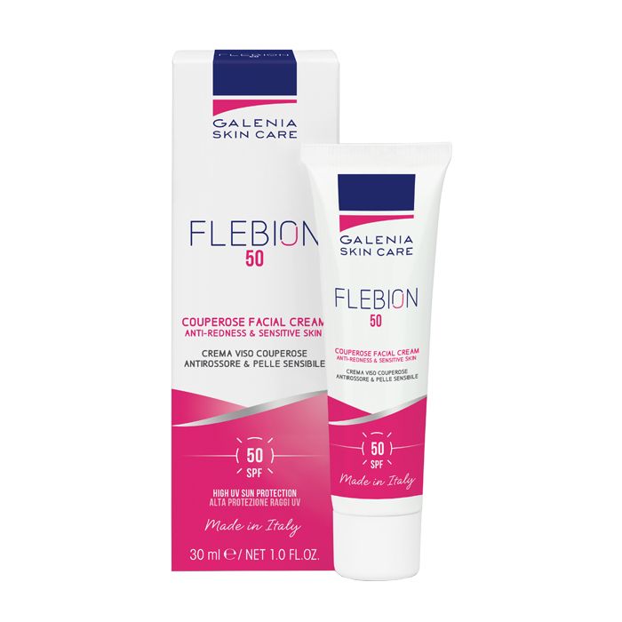 Crema viso indicata nel periodo estivo per la correzione di: couperose, rosacea, flushing, teleangectasie. Flebion 50 protegge dai raggi solari, prevenendo macchie e foto invecchiamento. La ricca e morbida texture nutre in profondità la pelle senza ungere, rendendola elastica e compatta e proteggendola dagli agenti esterni.