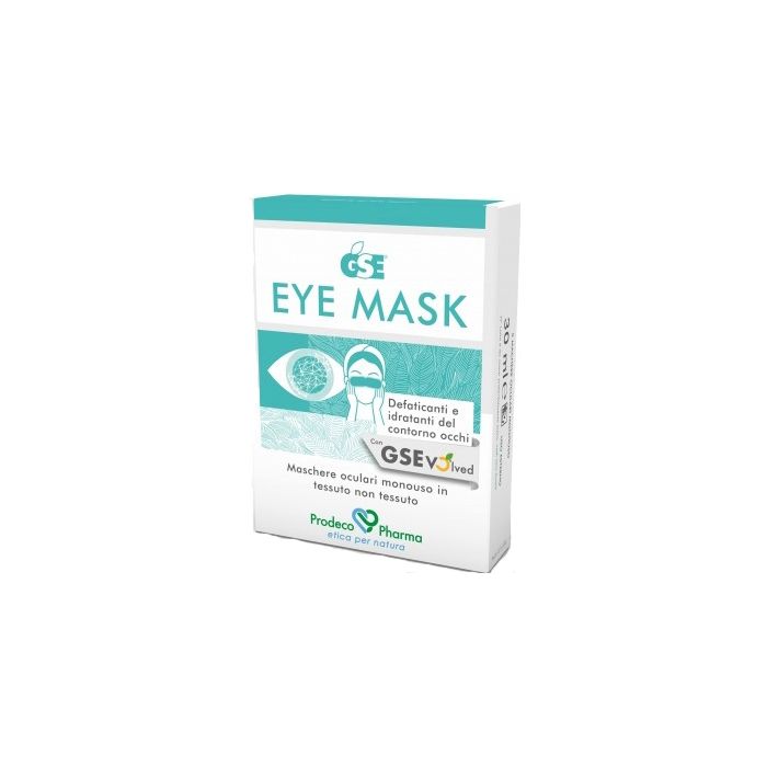 Prodotto cosmetico in compresse oculari monouso, a forma di maschera, imbibite di una soluzione a base di GSEvolved, estratti di sambuco, alga verde, altea, calendula e avena, acque di eufrasia e amamelide, acido ialuronico a basso peso molecolare, betaina ed eritritolo per un’azione decongestionante, lenitiva, defaticante e idratante.