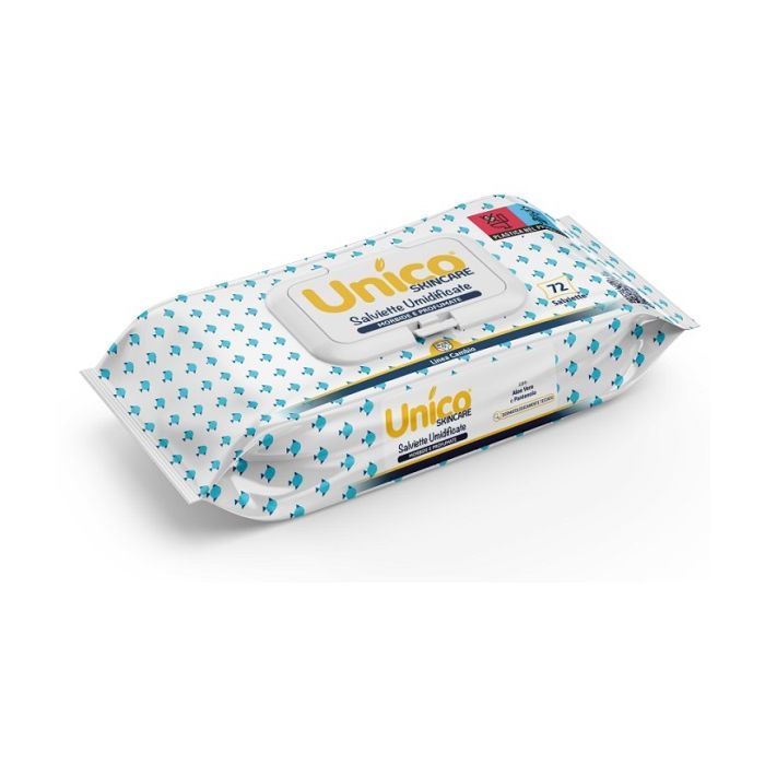 Le salviettine detergenti della linea Unico sono morbide e spesse, hanno un effetto pulente efficace ma allo stesso tempo non aggressivo sulla pelle del bambino grazie alla presenza dell'Aloe Vera gel dal potere idratante e disarrossante. L'allantoina contribuisce a lasciare un piacevole senso di morbidezza ed idratazione, accompagnato da un leggero profumo. Il prodotto è senza alcol e con pH fisiologico.