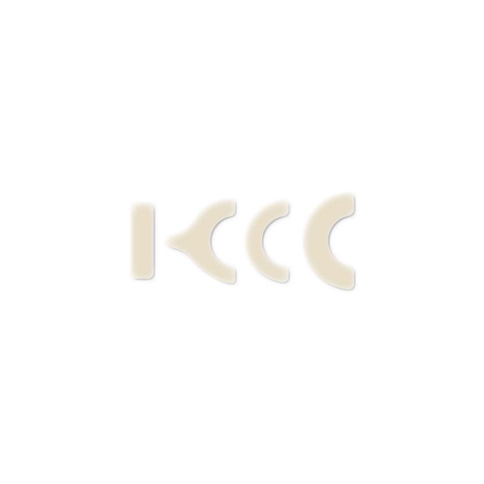 Cerotto elastico a mezzaluna XL: può essere usato nei casi in cui occorra una maggiore superficie adesiva per livellare ed evitare che la placca del presidio di arricci e si stacchi, quando la placca è ovale/rotonda e per aumentare il senso di sicurezza dell'utilizzatore e la tolleranza in caso di mal posizionamento.