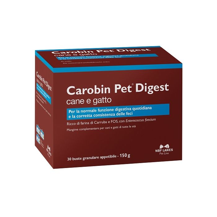 Mangime complementare. Carobin Pet Digest granulare appetibile può essere utile per il mantenimento della normale funzionalità digestiva di cani e gatti di tutte le età in caso di: alitosi, coprofagia, flatulenze, borborigmi, scarsa consistenza delle feci. Il miglioramento della qualità delle feci comporta una maggiore igiene della zona perianale che favorisce la normale funzione delle ghiandole annesse.