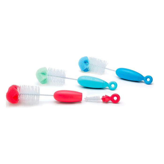 È dotato di un pratico gancio, di un comodo manico ergonomico e di due estremi: uno per la pulizia dei biberon e uno speciale per le tettarelle che, essendo più piccolo, si adatta perfettamente.