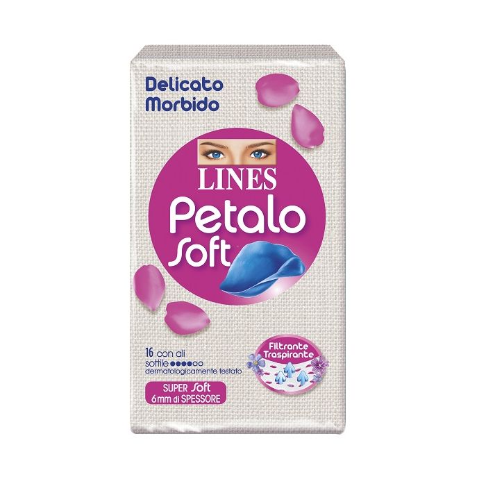 Lines Petalo Soft, gli assorbenti sottili più soffici e morbidi che offrono un contatto extra morbido sulla pelle, con uno spessore in più rispetto agli assorbenti Lines Petalo ultrasottili.