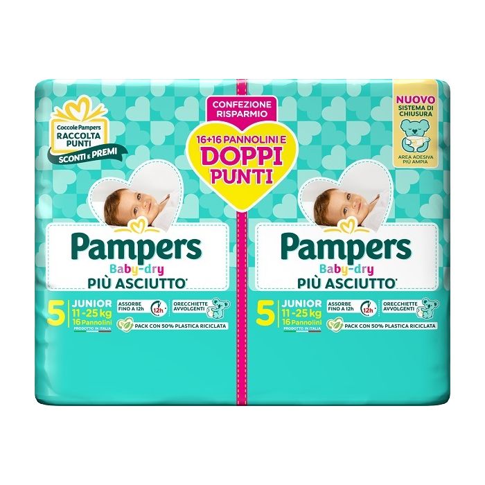 Pampers Baby Dry Pannolino Duo Downcount Junior 32 Pezzi