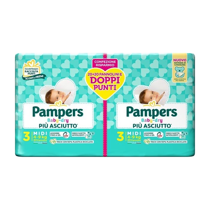 Pampers Baby Dry Pannolino Duo Downcount Midi 40 Pezzi