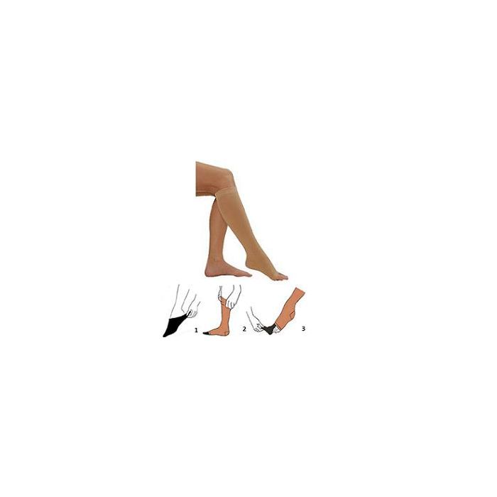 Come indossare il gambaletto a punta aperta (con puntale per facilitarne la calzata, incluso nella confezione):