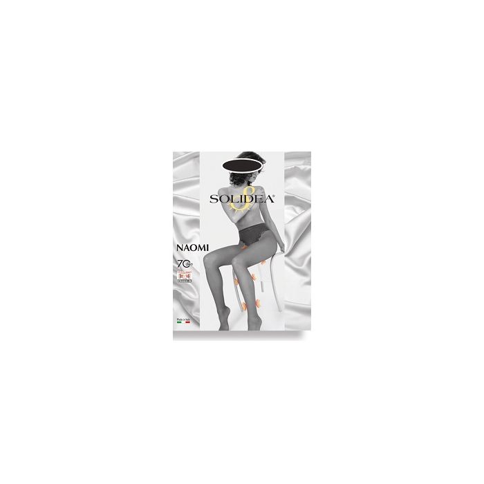Collant 70 denari a maglia liscia, straordinariamente velato, assicura benessere, esaltando fascino ed eleganza. Il raffinato corpino sgambato modella la figura e contiene il ventre. La compressione graduata 12/15 mmHg offre sollievo alle gambe, mantenendole fresche e riposate tutto il giorno. Un soffice plantare anatomico, assolutamente invisibile quando indossato, offre una morbida base d’appoggio al piede. Tassello igienico in cotone e cucitura piatta.Con funzione igienica Sanitized.