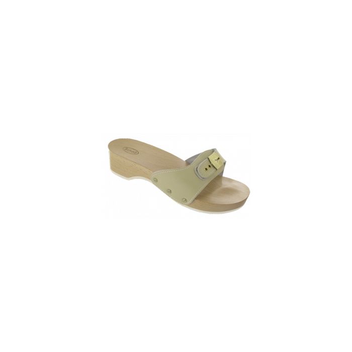 Zoccolo in legno di Scholl, con tecnologia Scholl Exercise, caratterizzato da un plantare anatomico che contribuisce a camminare in modo corretto ed aiuta a tonificare piedi e gambe.