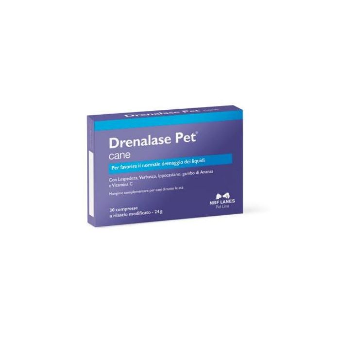 Mangime complementare per cani in compresse appetibili non divisibili a rilascio modificato, formulato con ananas, ippocastano, verbasco, lespedeza e vitamina C, per favorire il normale drenaggio dei liquidi interstiziali.