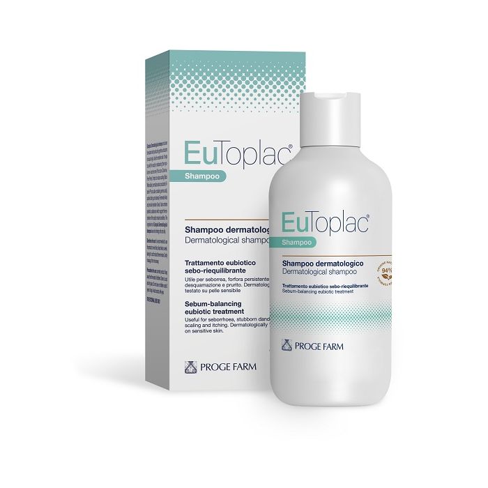Shampoo dermatologico formulato con tensioattivi di origine naturale particolarmente delicati ed ideali per pelli sensibili. Aiuta a purificare il cuoio capelluto riequilibrando il micobioma-batterioma (piroctone olamina, Pure-Phen), a normalizzare la desquamazione (vitamina PP e aminoacidi solforati), a lenire prurito e rossore (aloe fermentata) e a favorire una buona idratazione (urea). Contiene inoltre sostanze prebiotiche che favoriscono il recupero delle condizioni normali del cuoio capelluto. Gli ingredienti contenuti in Eutoplac Shampoo dermatologico donano ai capelli morbidezza e setosità.