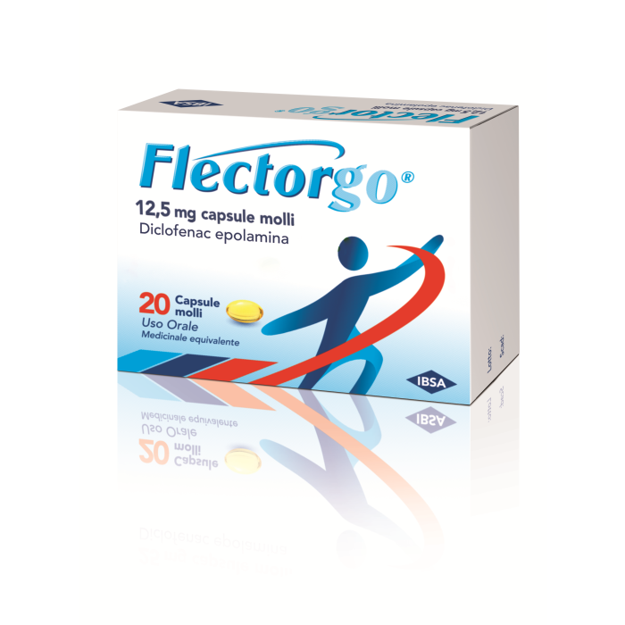 Per FLECTORGO 12,5 mg: Ogni capsula molle contiene diclofenac sotto forma di 15,38 mg di diclofenac epolamina equivalenti a 12,5 mg di diclofenac potassico. Per FLECTORGO 25 mg: Ogni capsula molle contiene diclofenac sotto forma di 30,76 mg di diclofenac epolamina equivalenti a 25 mg di diclofenac potassico. Eccipiente (i) con effetti noti: Per FLECTORGO 12,5 mg: Sorbitolo (E420) massimo 8,02 mg. Per FLECTORGO 25 mg: Sorbitolo (E420) massimo 10,07 mg. Per l’elenco completo degli eccipienti, vedere paragrafo 6.1.