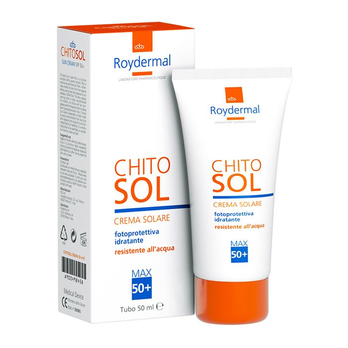 Emulsione siliconica, con funzione barriera, ricca di filtri meccanici e chimici, in grado di schermare la pelle dai danni nocivi delle radiazioni solari (MAX 50+). Ideale per bambini e per fototipi chiari, garantisce un’abbronzatura graduale e progressiva, prevenendo la comparsa delle indesiderate macchie di iperpigmentazione. CHITOSOL Crema Solare SPF 50+, contenuta in tubo allo scopo di garantire il prodotto da ogni contaminazione esterna o derivata dalla sua manipolazione, può essere usata tutte le mattine sul viso, come emulsione protettiva e idratante.