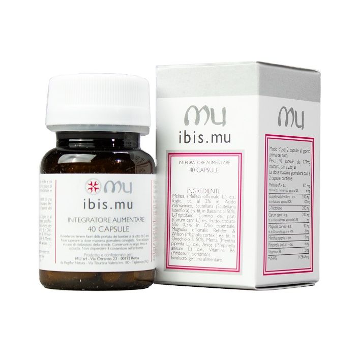Melissa (Melissa officinalis L.) e.s., foglie, tit. al 2% in acido rosmarinico, scutellaria (Scutellaria baicalensis L.) e.s. tit. in baicalina al 50%, L-triptofano, cumino dei prati (Carum carvi L.) e.s. frutto, titolato al 0,5% in olio essenziale, Magnolia officinalis Rehder & Wilson (Magnolia cortex) e.s. tit. in onochiolo al 50%, menta (Mentha piperita L.) o.e., anice (Pimpinella anisum L.) o.e., vitamina B6 (piridossina cloridrato).