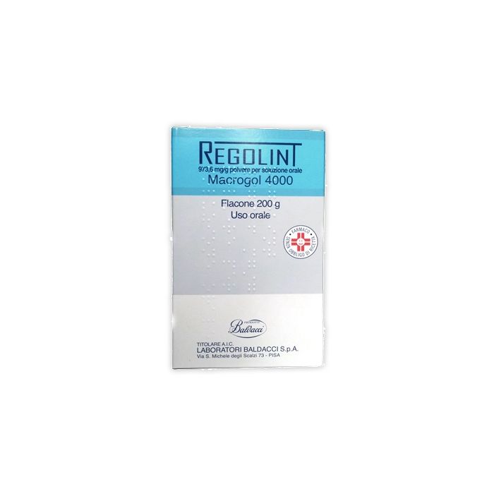 Avvertenze I dati sull’efficacia del trattamento nei bambini di età inferiore a 2 anni sono limitati. Il trattamento della stipsi con qualsiasi medicinale è solo un coadiuvante di uno stile di vita sano ed una corretta alimentazione, ad esempio: incremento dell’assunzione di liquidi e fibre vegetali appropriata attività fisica e ripristino della motilità intestinale. Prima di iniziare il trattamento deve essere escluso qualsiasi disordine organico. I lassativi non devono essere utilizzati dai soggetti con dolore addominale acuto o di origine sconosciuta, nausea o vomito, marcata accentuazione o riduzione della peristalsi, sanguinamento rettale. La presenza di uno o più di questi sintomi o segni richiede un adeguato approfondimento diagnostico da parte del medico al fine di escludere una delle condizioni patologiche che controindicano l’uso dei lassativi (ad esempio: ostruzione o sospetta ostruzione intestinale, stenosi o perforazione intestinale, ileo paralitico, gravi malattie infiammatorie dell’intestino). Dopo un ciclo di trattamento di 3 mesi, deve essere eseguita una supervisione clinica completa della costipazione. L’abuso di lassativi (uso frequente o prolungato o con dosi eccessive), particolarmente quelli di contatto o stimolanti, può causare diarrea persistente con conseguente perdita di acqua, sali minerali (specialmente potassio) e altri fattori nutritivi essenziali. Nei casi più gravi è possibile l’insorgenza di disidratazione o ipopotassiemia la quale può determinare disfunzioni cardiache o neuromuscolari, specialmente in caso di contemporaneo trattamento con glicosidi cardiaci, diuretici o corticosteroidi. Va posta cautela negli anziani, nei pazienti con insufficienza epatica, insufficienza renale, insufficienza cardiaca. È opportuno in questi casi controllare periodicamente i livelli degli elettroliti sierici. L’abuso di lassativi, specialmente quelli di contatto (lassativi stimolanti), può causare dipendenza (e, quindi, possibile necessità di aumentare progressivamente il dosaggio), stitichezza cronica e perdita delle normali funzioni intestinali (atonia intestinale). REGOLINT, non contenendo alcun zucchero o poliolo, può essere assunto da pazienti diabetici o sottoposti ad un regime privo di galattosio. Precauzioni per l’uso Sono necessari approfondimenti diagnostici quando la necessità del lassativo deriva da un improvviso cambiamento delle precedenti abitudini intestinali (frequenza e caratteristiche delle evacuazioni) che duri da più di due settimane o quando l’uso del lassativo non riesce a produrre effetti. Sono stati riportati casi molto rari di reazioni di ipersensibilità (eruzione cutanea, orticaria, edema) con alcuni medicinali contenenti macrogol, compresi casi eccezionali di shock anafilattico. In questi casi interrompere l’assunzione del medicinale e consultare immediatamente un medico.