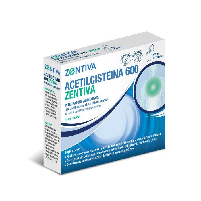 Acetilcisteina 600 Zentiva 10 Bustine Bipartite Gusto Tropical