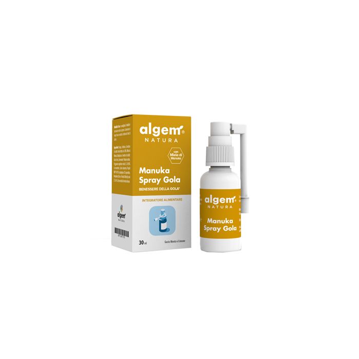 Integratore alimentare in spray a base di miele di manuka, betaglucano e sodio ialuronato.