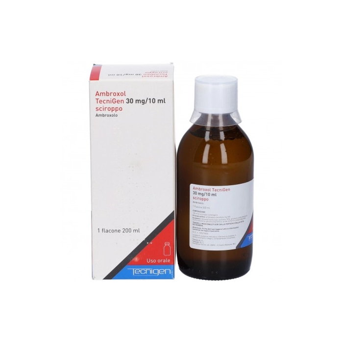 L’ambroxolo deve essere somministrato con cautela nei pazienti affetti da ulcera peptica. I mucolitici possono indurre ostruzione bronchiale nei bambini di età inferiore ai 2 anni. Infatti la capacità di drenaggio del muco bronchiale è limitata in questa fascia di età, a causa delle caratteristiche fisiologiche delle vie respiratorie. Essi non devono quindi essere usati nei bambini di età inferiore a 2 anni (per le forme orali) (vedere paragrafo 4.3). Sono stati segnalati casi di reazioni cutanee gravi quali eritema multiforme, sindrome di Stevens - Johnson (SJS)/necrolisi epidermica tossica (TEN) e pustolosi esantematica acuta generalizzata (AGEP) associati alla somministrazione di ambroxolo. Se sono presenti sintomi o segni di rash cutaneo progressivo (talvolta associato a vesciche o lesioni della mucosa), il trattamento con ambroxolo deve essere interrotto immediatamente e deve essere consultato un medico. AMBROXOL TecniGen 30mg/10ml sciroppo contiene: • sorbitolo: i pazienti affetti da rari problemi ereditari di intolleranza al fruttosio non devono assumere questo medicinale. Può avere un lieve effetto lassativo. • glicerolo: pericoloso ad alte dosi. Può causare emicrania, disturbi gastrici e diarrea. • acido benzoico: lievemente irritante per cute, occhi e membrane mucose. Può aumentare il rischio di ittero nei neonati.