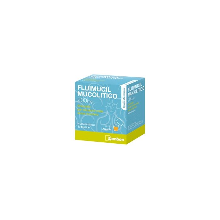 I pazienti affetti da asma bronchiale debbono essere strettamente controllati durante la terapia, se compare broncospasmo il trattamento con N-acetilcisteina deve essere immediatamente sospeso e deve essere avviato un trattamento appropriato. I mucolitici possono indurre ostruzione bronchiale nei bambini di età inferiore ai 2 anni. Infatti la capacità di drenaggio del muco bronchiale è limitata in questa fascia d’età, a causa delle caratteristiche fisiologiche delle vie respiratorie. Essi non devono quindi essere usati nei bambini di età inferiore ai 2 anni (vedere paragrafo 4.3). Richiede particolare attenzione l’uso del medicinale in pazienti affetti da ulcera peptica o con storia di ulcera peptica, specialmente in caso di contemporanea assunzione di altri farmaci con un noto effetto gastrolesivo. L'eventuale presenza di un odore sulfureo non indica alterazione del preparato ma è propria del principio attivo in esso contenuto. La somministrazione di N-acetilcisteina, specie all'inizio del trattamento, può fluidificare le secrezioni bronchiali ed aumentarne nello stesso tempo il volume. Se il paziente è incapace di espettorare in modo efficace, per evitare la ritenzione dei secreti occorre ricorrere al drenaggio posturale e alla broncoaspirazione. N-acetilcisteina può influenzare il metabolismo dell’istamina. Pertanto dovrebbe essere usata cautela quando si somministra Fluimucil Mucolitico in pazienti con intolleranza all’istamina, poiché potrebbero manifestarsi sintomi da ipersensibilità. Informazioni importanti su alcuni eccipienti Lo sciroppo contiene paraidrossibenzoati che possono provocare reazioni allergiche di tipo ritardato. Le compresse orosolubili, lo sciroppo da 600 mg/15 ml e il granulato per soluzione orale senza zucchero contengono sorbitolo. Ai pazienti con intolleranza ereditaria al fruttosio, non deve essere somministrato questo medicinale. Le compresse orosolubili, le compresse effervescenti e il granulato per soluzione orale senza zucchero contengono aspartame, una fonte di fenilalanina che può essere dannosa nei pazienti affetti da fenilchetonuria. Il granulato per soluzione orale da 100 mg e da 200 mg contengono giallo tramonto (E110) che può causare reazioni allergiche. Il granulato per soluzione orale da 100 e 200 mg contiene saccarosio. I pazienti affetti da rari problemi ereditari di intolleranza al fruttosio, da malassorbimento di glucosio-galattosio o da insufficienza di sucrasi isomaltasi, non devono assumere questo medicinale. Il granulato per soluzione orale da 200 mg contiene 2.2 g di saccarosio per bustina mentre il granulato per soluzione orale da 100 mg contiene 4.3 g di saccarosio per bustina quindi è da tenere in considerazione nei pazienti affetti da diabete mellito. Le compresse orosolubili contengono 26,9 mg di sodio per dose, equivalenti a 1,3% dell’assunzione massima giornaliera raccomandata dall’OMS che corrisponde a 2 g di sodio per un adulto. Le compresse effervescenti contengono 156,9 mg di sodio per dose, equivalenti a 7,8% dell’assunzione massima giornaliera raccomandata dall’OMS che corrisponde a 2 g di sodio per un adulto. Lo sciroppo da 100 mg/5 ml (150 ml) contiene 37,5 mg di sodio per dose da 10 ml, equivalenti a 1,8% dell’assunzione massima giornaliera raccomandata dall’OMS che corrisponde a 2 g di sodio per un adulto. Lo sciroppo da 100 mg/5 ml (150 ml) contiene 18,8 mg di sodio per dose da 5 ml, equivalenti a 0,9% dell’assunzione massima giornaliera raccomandata dall’OMS che corrisponde a 2 g di sodio per un adulto. Lo sciroppo da 100 mg/5 ml (200 ml) contiene 38,2 mg di sodio per dose da 10 ml, equivalenti a 1.9% dell’assunzione massima giornaliera raccomandata dall’OMS che corrisponde a 2 g di sodio per un adulto. Lo sciroppo da 100 mg/5 ml (200 ml) contiene 19,1 mg di sodio per la dose da 5 ml, equivalenti a 0,9% dell’assunzione massima giornaliera raccomandata dall’OMS che corrisponde a 2 g di sodio per un adulto. Lo sciroppo da 600 mg/15 ml contiene 96,6 mg di sodio per la dose da 15 ml, equivalenti a 4,8% dell’assunzione massima giornaliera raccomandata dall’OMS che corrisponde a 2 g di sodio per un adulto.