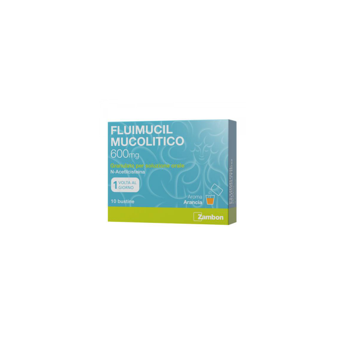 I pazienti affetti da asma bronchiale debbono essere strettamente controllati durante la terapia, se compare broncospasmo il trattamento con N-acetilcisteina deve essere immediatamente sospeso e deve essere avviato un trattamento appropriato. I mucolitici possono indurre ostruzione bronchiale nei bambini di età inferiore ai 2 anni. Infatti la capacità di drenaggio del muco bronchiale è limitata in questa fascia d’età, a causa delle caratteristiche fisiologiche delle vie respiratorie. Essi non devono quindi essere usati nei bambini di età inferiore ai 2 anni (vedere paragrafo 4.3). Richiede particolare attenzione l’uso del medicinale in pazienti affetti da ulcera peptica o con storia di ulcera peptica, specialmente in caso di contemporanea assunzione di altri farmaci con un noto effetto gastrolesivo. L'eventuale presenza di un odore sulfureo non indica alterazione del preparato ma è propria del principio attivo in esso contenuto. La somministrazione di N-acetilcisteina, specie all'inizio del trattamento, può fluidificare le secrezioni bronchiali ed aumentarne nello stesso tempo il volume. Se il paziente è incapace di espettorare in modo efficace, per evitare la ritenzione dei secreti occorre ricorrere al drenaggio posturale e alla broncoaspirazione. N-acetilcisteina può influenzare il metabolismo dell’istamina. Pertanto dovrebbe essere usata cautela quando si somministra Fluimucil Mucolitico in pazienti con intolleranza all’istamina, poiché potrebbero manifestarsi sintomi da ipersensibilità. Informazioni importanti su alcuni eccipienti Sodio benzoato Lo sciroppo da 100 mg/5 ml (150 ml e 200 ml) contiene 15 mg di sodio benzoato per la dose da 10 ml e 7,5 mg per la dose da 5 ml.Paraidrossibenzoati Gli sciroppi contengono paraidrossibenzoati che possono provocare reazioni allergiche di tipo ritardato. Sorbitolo Le compresse orosolubili, lo sciroppo da 600 mg/15 ml, il granulato per soluzione orale da 600 mg e il granulato per soluzione orale senza zucchero (100 mg e 200 mg) contengono sorbitolo. Il contenuto di sorbitolo in medicinali per uso orale può modificare la biodisponibilità di altri medicinali per uso orale co-somministrati. Ai pazienti con intolleranza ereditaria al fruttosio non devono essere somministrati questi medicinali. Aspartame Le compresse orosolubili, le compresse effervescenti, il granulato per soluzione orale da 600 mg e il granulato per soluzione orale senza zucchero da 100 e 200 mg contengono aspartame, una fonte di fenilalanina che può essere dannosa nei pazienti affetti da fenilchetonuria. Glucosio Le compresse effervescenti da 600 mg, il granulato per soluzione orale da 600 mg ed il granulato per soluzione orale da 200 mg contengono glucosio, i pazienti affetti da rari problemi di malassorbimento di glucosio-galattosio non devono assumere questo medicinale. Giallo tramonto (E110) Il granulato per soluzione orale da 100 mg e da 200 mg contiene giallo tramonto (E110) che può causare reazioni allergiche. Saccarosio Il granulato per soluzione orale da 100 e 200 mg contiene saccarosio. I pazienti affetti da rari problemi ereditari di intolleranza al fruttosio, da malassorbimento di glucosio-galattosio o da insufficienza di sucrasi isomaltasi, non devono assumere questo medicinale. Sodio Le compresse orosolubili contengono 26,9 mg di sodio per compressa equivalenti a 1,3% dell’assunzione massima giornaliera raccomandata dall’OMS che corrisponde a 2 g di sodio per un adulto. Le compresse effervescenti da 200 mg e 600 mg contengono 156,9 mg di sodio per dose, equivalenti a 7,8% dell’assunzione massima giornaliera raccomandata dall’OMS che corrisponde a 2 g di sodio per un adulto. Lo sciroppo da 100 mg/5 ml (150 ml) contiene 36,7 mg di sodio per dose da 10 ml, equivalenti a 1,83% dell’assunzione massima giornaliera raccomandata dall’OMS che corrisponde a 2 g di sodio per un adulto. Lo sciroppo da 100 mg/5 ml (150 ml) contiene 18,4 mg di sodio per dose da 5 ml, equivalenti a 0,9% dell’assunzione massima giornaliera raccomandata dall’OMS che corrisponde a 2 g di sodio per un adulto. Lo sciroppo da 100 mg/5 ml (200 ml) contiene 38,2 mg di sodio per dose da 10 ml, equivalenti a 1.9% dell’assunzione massima giornaliera raccomandata dall’OMS che corrisponde a 2 g di sodio per un adulto. Lo sciroppo da 100 mg/5 ml (200 ml) contiene 19,1 mg di sodio per la dose da 5 ml, equivalenti a 0,9% dell’assunzione massima giornaliera raccomandata dall’OMS che corrisponde a 2 g di sodio per un adulto. Lo sciroppo da 600 mg/15 ml contiene 98,31 mg di sodio per la dose da 15 ml equivalenti a 4,9% dell’assunzione massima giornaliera raccomandata dall’OMS che corrisponde a 2 g di sodio per un adulto. Lattosio Il granulato per soluzione orale da 600 mg ed il granulato per soluzione orale da 200 mg contengono lattosio. I pazienti affetti da rari problemi ereditari di intolleranza al galattosio, da deficit totale di lattasi, o da malassorbimento di glucosio-galattosio, non devono assumere questo medicinale. Propilene glicole Lo sciroppo da 100 mg/5 ml (150 ml e 200 ml) contiene 23,4 mg di propilene glicole per la dose da 10 ml e 11,7 mg per la dose da 5 ml. Lo sciroppo da 600 mg/15 ml contiene 168 mg di propilene glicole per dose (15 ml) equivalente a 11,2 mg/ml. Etanolo Lo sciroppo da 100 mg/5 ml (150 ml e 200 ml) contiene 3,85 mg di alcol (etanolo) in ogni 100 ml. La quantità in dose di questo medicinale è equivalente a meno di 1 ml di birra o 1 ml di vino. La piccola quantità di alcol in questo medicinale non produrrà effetti rilevanti.