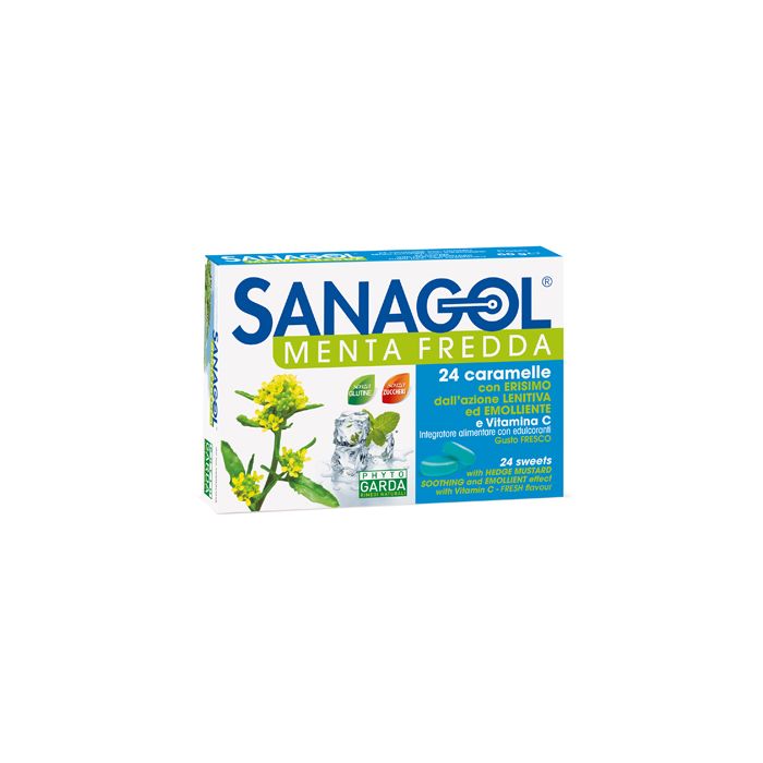 Sciogliere una caramella Sanagol MENTA FREDDA lentamente in bocca.