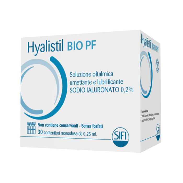 Ciascun contenitore monodose va usato solo immediatamente dopo l’apertura. L’eventuale residuo non deve essere riutilizzato, poiché Hyalistil BIO PF non contiene conservanti e il prodotto rimanente potrebbe contaminarsi esponendo al rischio di infezioni oculari.
