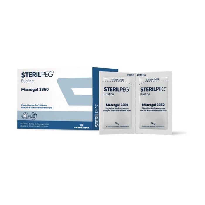 Sterilpeg è un dispositivo medico in polvere per sospensione orale estemporanea, utile nel trattamento della stipsi.