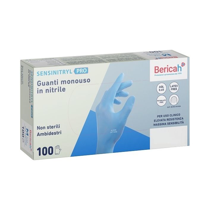 Senza lattice e senza ftalati, preserva da possibili reazioni allergiche correlate alle proteine del lattice di gomma naturale. Di colore blu, ambidestri con polsino salvastrappo. Superficie micro-ruvida che garantisce la massima sensibilità ed una presa migliore. Ottima resistenza chimica a disinfettanti e principali sostanze utilizzate in ambito chimico/farmaceutico.