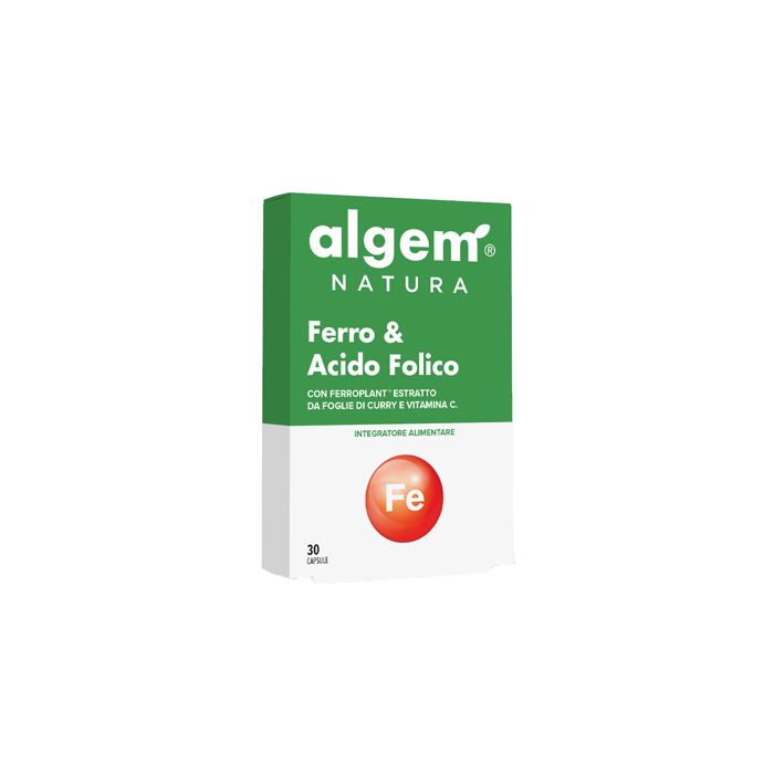 Integratore alimentare in capsule a base di ferro bisglicinato ad elevata biodisponibilità e Ferroplant, fonte vegetale di ferro che forma un deposito a livello intestinale, rilasciato gradualmente nel sangue.