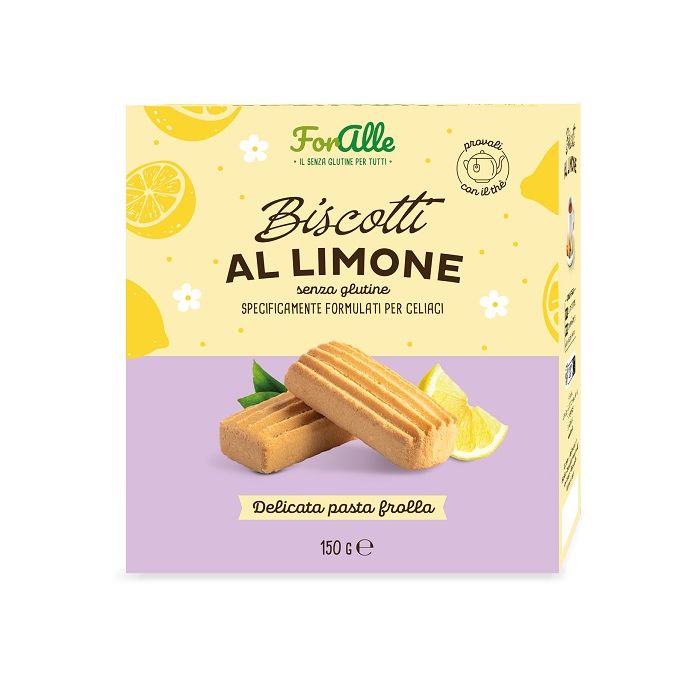 Farina di riso, fecola di patate, zucchero, margarina vegetale [grassi vegetali (80%)(palma), acqua, emulsionante (E471), sale (0,3%), correttore di acidità (E330), uova intere fresche pastorizzate, acqua, glucosio in polvere, amido di patata modificato; addensanti: farina di semi di guar; agenti lievitanti (difosfato disodico, carbonato acido di sodio); fibra vegetale: inulina; oli essenziali di limone 0,5%; addensante: E464 (idrossi-propil-metilcellulosa).