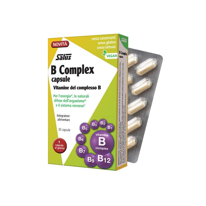 Offre un sostegno in caso di scarso apporto con la dieta o di aumentato fabbisogno di tiamina (vit. B1), riboflavina (vit. B2), niacina, acido pantotenico, B6, biotina, acido folico e vitamina B12.