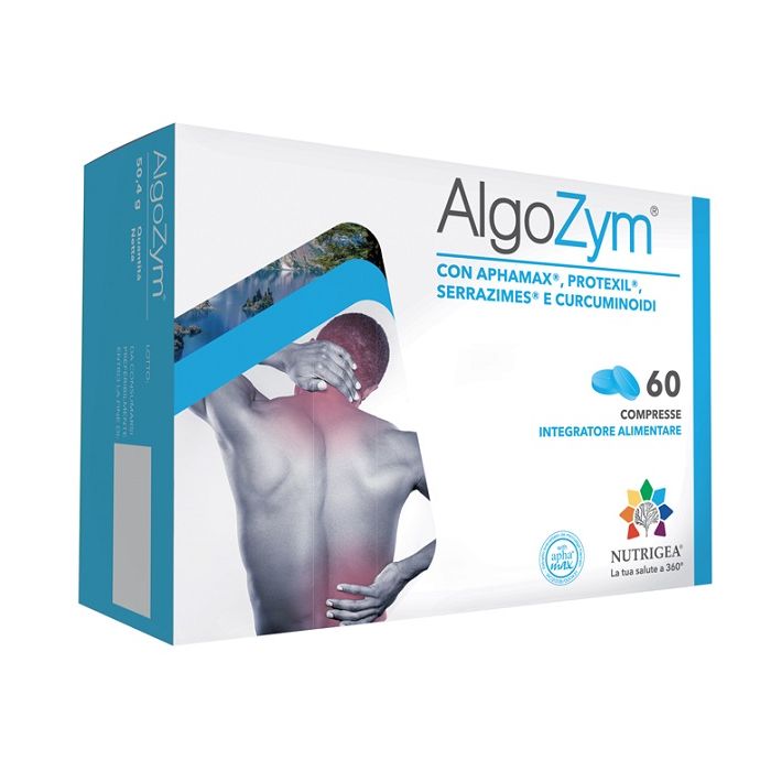 AlgoZym è un integratore alimentare a base di AphaMax (estratto da microalghe Klamath naturalmente ricco in ficocianine) con Curcumina e i complessi enzimatici Protexil e Serrazimes.