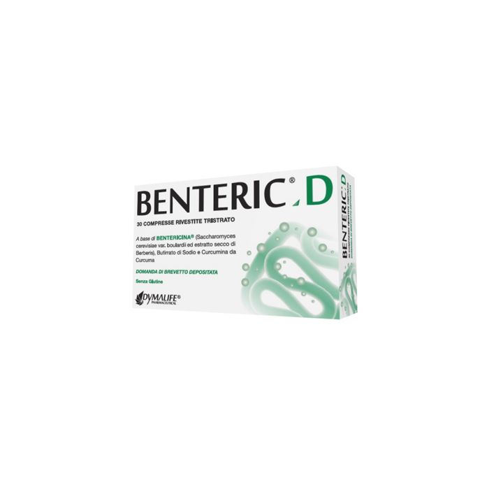 Complemento alimentare a base di Bentericina, un complesso contenente Saccharomyces cerevisiae var. boulardii ed estratto secco di Berberis, con burrito di sodio e curcumina da curcuma. Il prodotto, grazie al Berberis, contribuisce alla funzionalità del sistema digerente; grazie alla curcuma ha un'azione antiossidante; grazie ai suoi probiotici, favorisce l'equilibrio della flora intestinale.