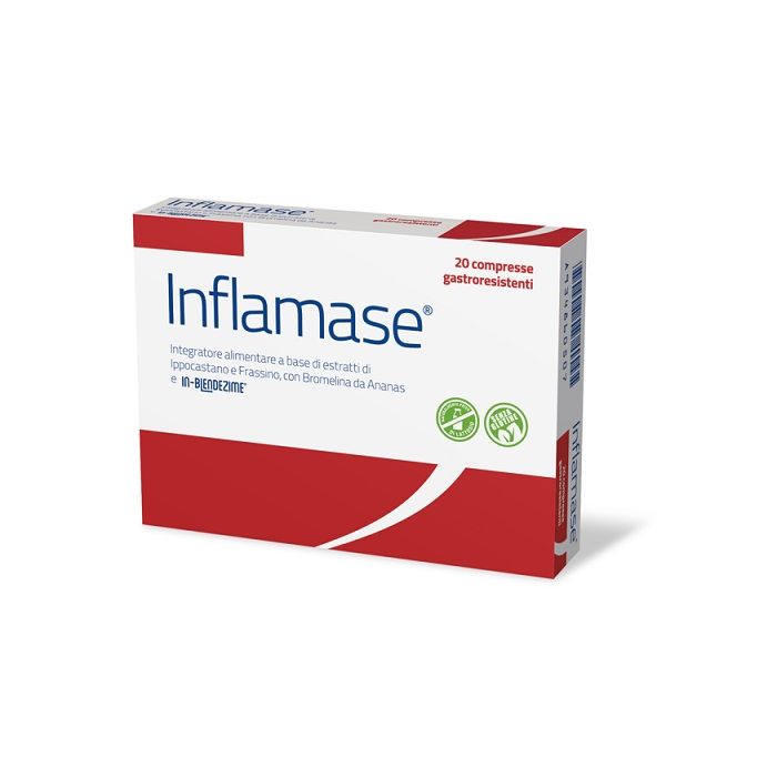 Frassino (Fraxinus excelsior L.) foglie e.s., ippocastano (Aesculus hippocastanum L.) semi e.s. tit. 20% in escina; agente di carica: cellulosa microcristallina; bromelina 2500 GDU/g da gambo d'ananas [Ananas comosus (L.) Merr.]; filmatura (agenti di rivestimento: idrossipropilmetilcellulosa, gommalacca, talco, esteri acetici di mono e digliceridi degli acidi grassi, polietilenglicole, polivinilpirrolidone; colorante: E170); In-Blendezime (complesso enzimatico da maltodestrine fermentate 600.000 U/g), amido di mais; agente di resistenza: tricalcium fosfato; agenti antiagglomeranti: mono e digliceridi degli acidi grassi, biossido di silicio.