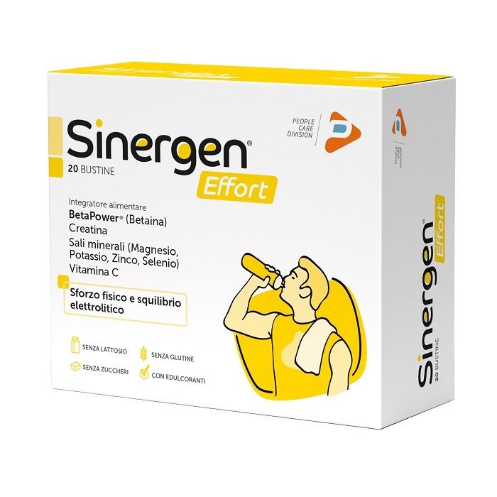 La formula Sinergen Effort è arricchita con BetaPower (betaina o trimetilglicina), noto osmoprotettore che si trova abbondante come costituente naturale in diverse piante, e creatina, un derivato amminoacidico endogeno prodotto dall'organismo e presente principalmente nel muscolo.