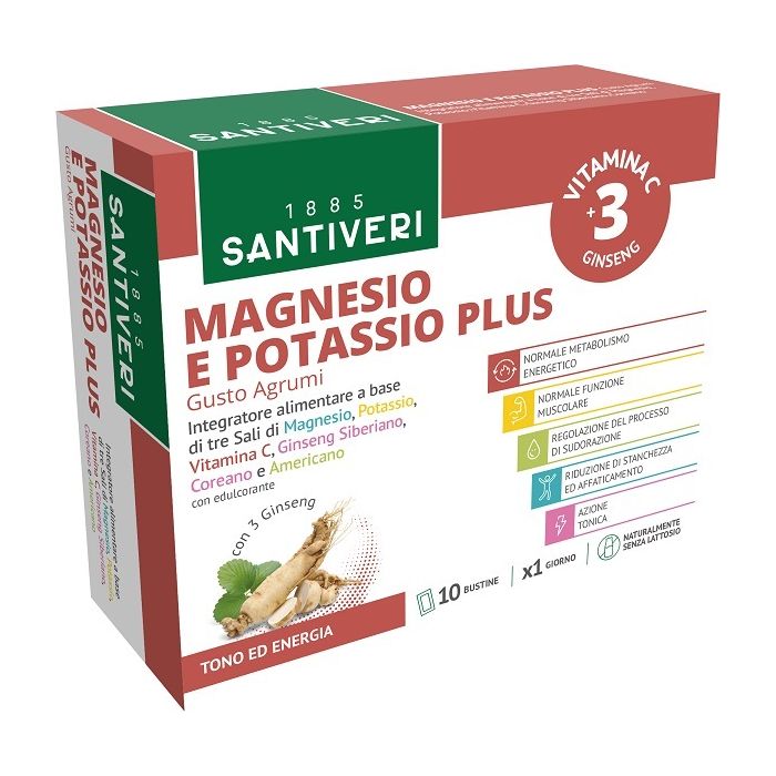 Integratore alimentare a base di tre sali di magnesio, potassio, vitamina C, ginseng siberiano, coreano e americano.