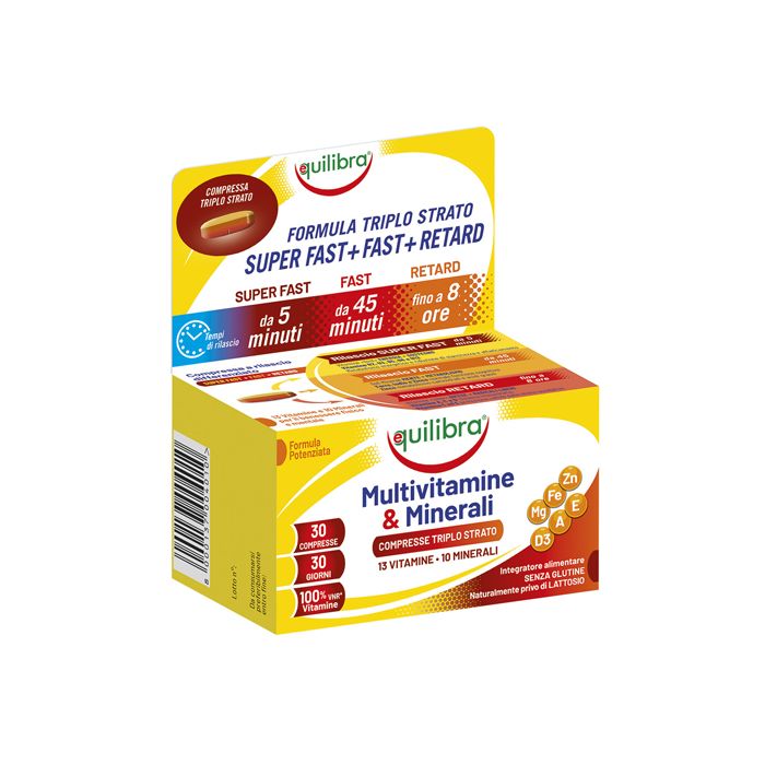 Integratore alimentare a base di vitamine e minerali in compresse triplo strato formulate con tecnologia innovativa SUPER FAST + FAST + RETARD che permette un rilascio graduale nel tempo delle vitamine e dei minerali. Formula completa studiata per le esigenze specifiche degli adulti con più di 50 anni.
