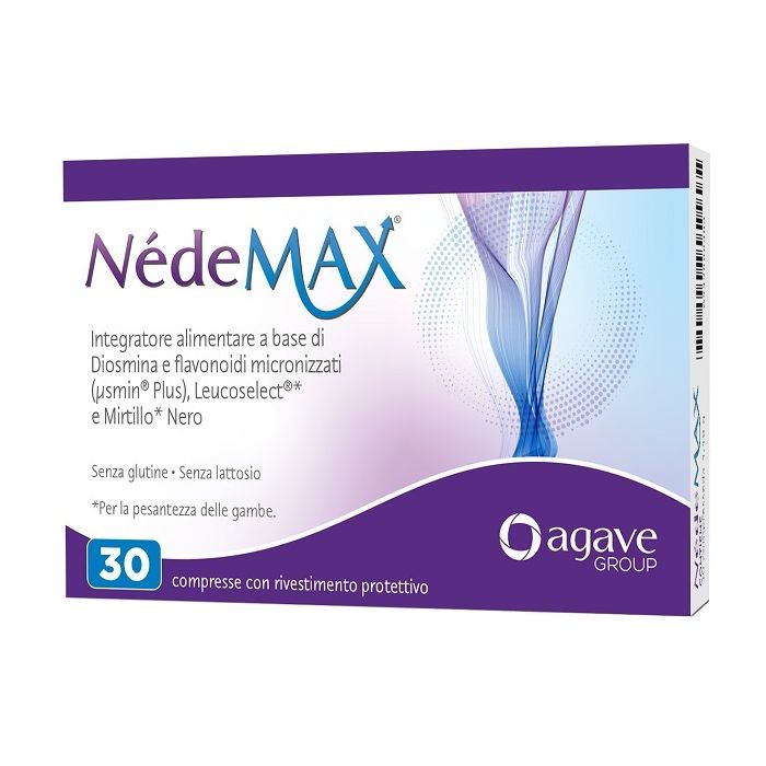 Integratore alimentare a base di diosmina e flavonoidi micronizzati, Leucoselect (proantocianidine) e mirtillo nero. Nédemax è indicato in tutti i casi di insufficiente apporto nella dieta o aumentato fabbisogno di tali nutrienti. La Vitis vinifera (da cui sono estratte le proantocianidine) e il mirtillo nero sono utili alla funzionalità del microcircolo, in caso di pesantezza delle gambe, e possiedono proprietà antiossidanti.