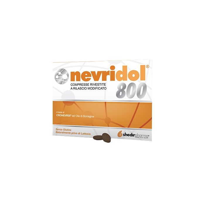 Compresse rivestite a rilascio modificato è un complemento alimentare a base di Cronevrix ed Olio di Borragine, indicato nei casi di ridotto apporto con la dieta o di un aumentato fabbisogno di tali elementi. Nevridol 800 compresse con Olio di Borragine che contribuisce all’integrità e funzionalità delle membrane cellulari e con Salvia miltiorrhiza che ha un’azione antiossidante.