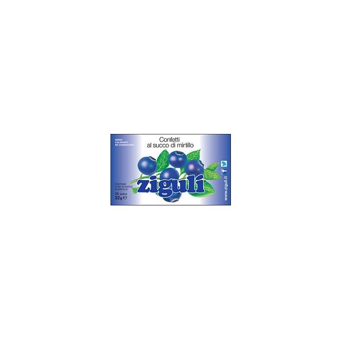 Destrosio; zucchero; succo di mirtillo 28% (da succo concentrato e disidratato); sciroppo di glucosio; addensante: gomma arabica; acidificante: acido citrico; antiagglomerante: magnesio stearato; aromi; agente di rivestimento: cera carnauba.