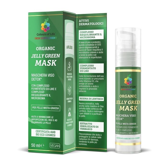 Maschera viso detox con complesso fermentato D3-like e complesso riequilibrante il microbioma.
