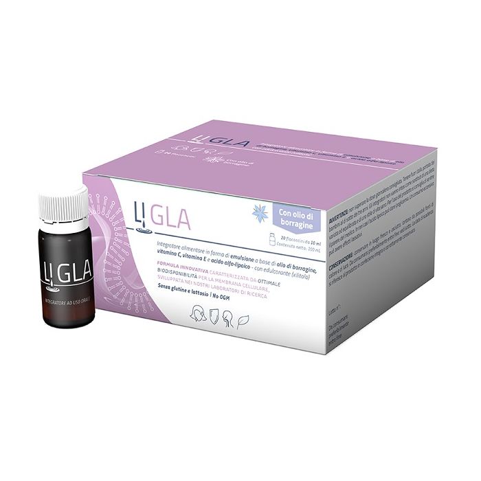 integratore alimentare in forma di emulsione liquida orale contenente GLA (125,5 mg/10 mL) da olio di borragine.