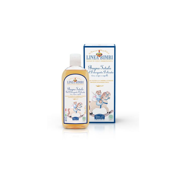 Base detergente arricchita dalle proteine di Mandorle dolci e dagli estratti di fiori di Calendula e Camomilla che permette il distacco delle impurità senza alterare le delicate strutture del capello e della cute del neonato.
