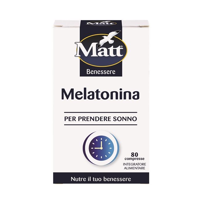 Integratore alimentare a base di melatonina. La melatonina è una sostanza naturalmente presente nel nostro organismo, che contribuisce alla riduzione del tempo richiesto per prendere sonno. La melatonina aiuta inoltre ad alleviare gli effetti del jet lag. Melatonina Matt grazie ai suoi benefici effetti è un valido aiuto per chi ha difficoltà durante le fasi di addormentamento.
