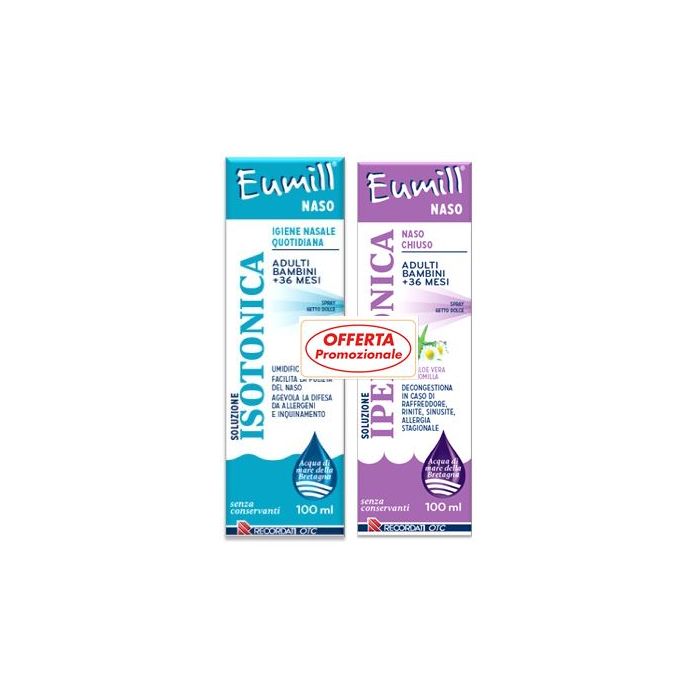 Eumill Naso Bipack Spray Soluzione Isotonica 100 Ml + Soluzione Ipertonica 100 Ml