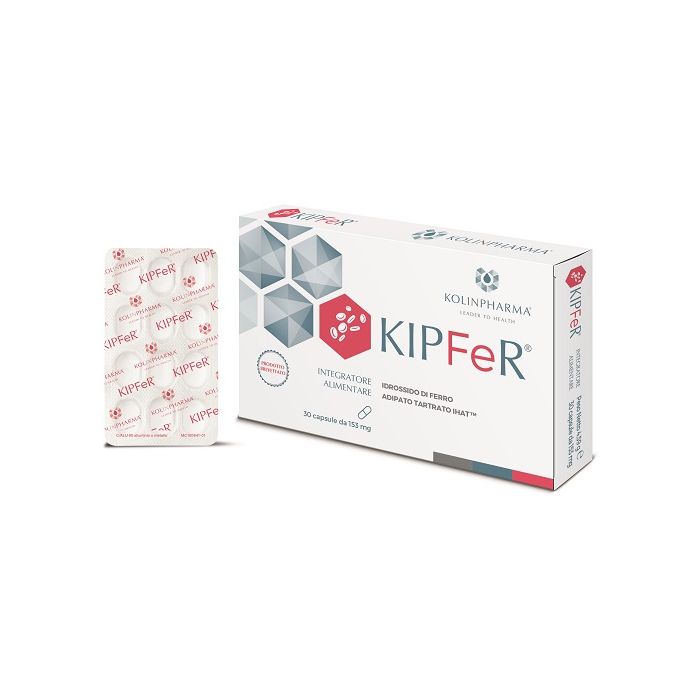 Integratore alimentare a base di idrossido di ferro adipato tartrato (IHAT), certificato dall’Autorità Europea per la Sicurezza Alimentare (EFSA) come l’unica e innovativa sorgente di ferro in nanoparticelle. IHAT è un analogo sintetico della ferritina nutrizionale che rappresenta la principale forma di accumulo del ferro nell’organismo. KIPFeR pertanto viene assorbito in via del tutto fisiologica dalle cellule della mucosa intestinale, in completa assenza delle reazioni ossidative che possono determinare situazioni infiammatorie con insorgenza di effetti collaterali. KIPFeR è utile per un recupero ottimale dagli stati carenziali di ferro e dall’anemia. KIPFeR non accumula ferro nella e sulla mucosa intestinale, nelle strutture immuni ad essa associate, nel fegato, e non ha attività pro-infiammatoria. In un unica somministrazione giornaliera è pertanto clinicamente dimostrato sicuro ed altamente tollerato, senza alcuna alterazione del microbioma intestinale.