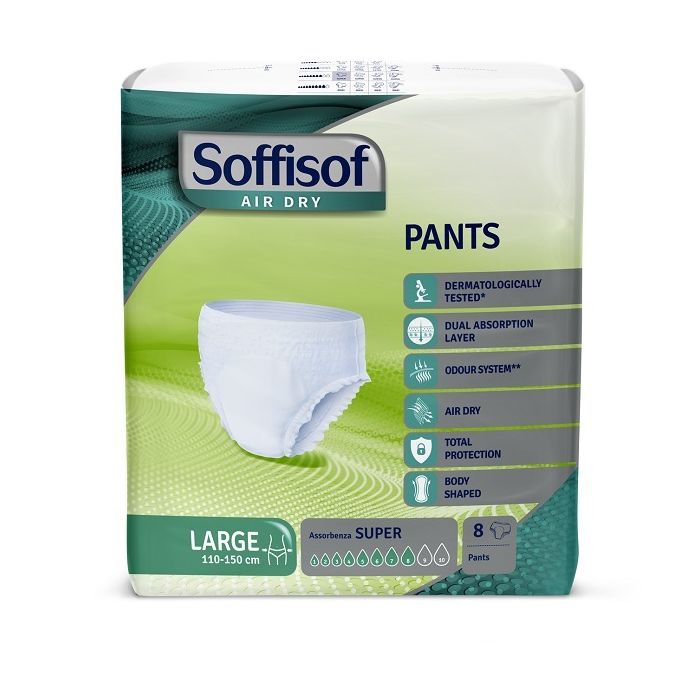 Pannolone Soffisof Air Dry Pants Large 110-150cm Assorbenza Super 8 Pezzi